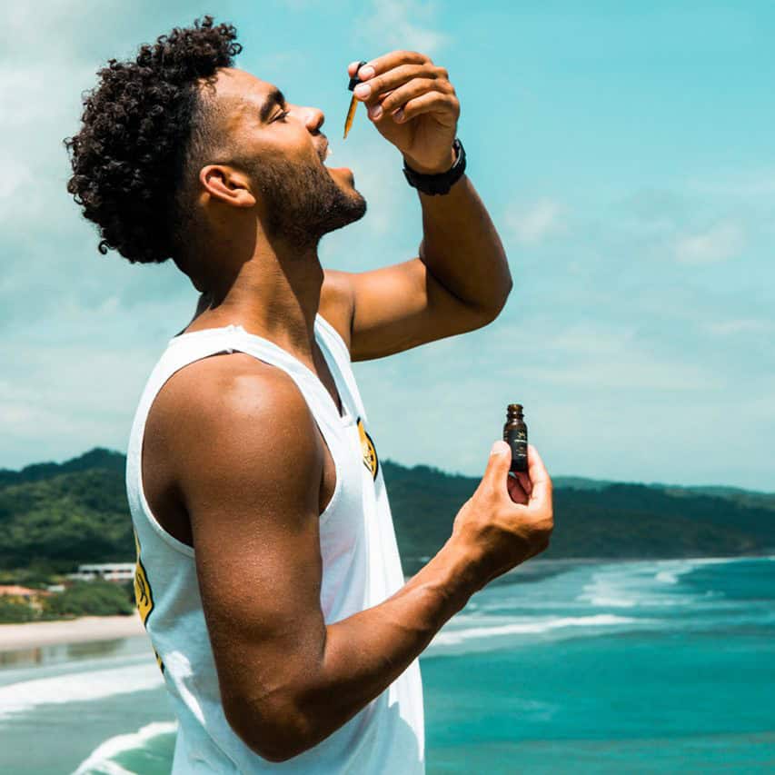 “Recharging the body and mind with my favorite @HempzillaCBD tincture while we wait for swell!”